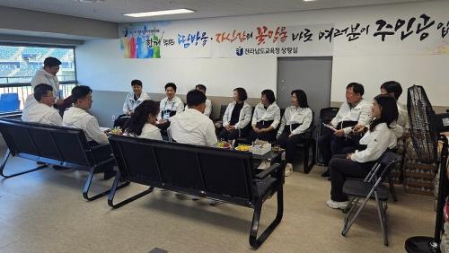 °æ±â °ü¶÷ ÈÄ ¸ñÆ÷Á¾ÇÕ°æ±âÀå Àü¶ó³²µµ±³À°Ã» »óȲ½ÇÀ» ã¾Æ ÀÓ¿øÁøµéÀ» °Ý·ÁÇÑ µÚ Àü³² Ư¼öÇб³ ±³Àå´Ü°ú °£´ãȸ¸¦ °®°í Çб³ ÇöÀåÀÇ Àå¾ÖüÀ° Çö¾È¿¡ ´ëÇÑ ÀǰßÀ» ³ª´³´Ù.