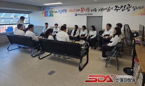°æ±â °ü¶÷ ÈÄ ¸ñÆ÷Á¾ÇÕ°æ±âÀå Àü¶ó³²µµ±³À°Ã» »óȲ½ÇÀ» ã¾Æ ÀÓ¿øÁøµéÀ» °Ý·ÁÇÑ µÚ Àü³² Ư¼öÇб³ ±³Àå´Ü°ú °£´ãȸ¸¦ °®°í Çб³ ÇöÀåÀÇ Àå¾ÖüÀ° Çö¾È¿¡ ´ëÇÑ ÀǰßÀ» ³ª´³´Ù.