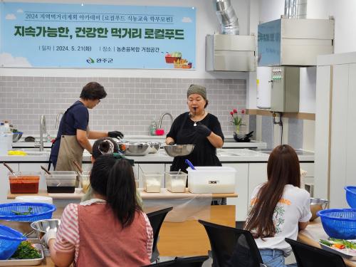 ÃÑ 2ºÎ·Î ±¸¼ºµÈ ±³À°Àº 1ºÎ¿¡¼­ ¿ÏÁÖ±º Áö¿ª¸Ô°Å¸®°èȹ°ú ·ÎÄÃǪµå Á¤Ã¥À» ¾Ë¸®´Â ½Ã°£À¸·Î ä¿öÁ³´Ù. 2ºÎ¿¡¼­´Â ¿ä¸®Àü¹®°¡¿Í ÇÔ²² Á¦Ã¶ ³ó»ê¹°À» Ȱ¿ëÇÑ ¿ä¸®½Ç½ÀÀ» ÁøÇàÇß´Ù.