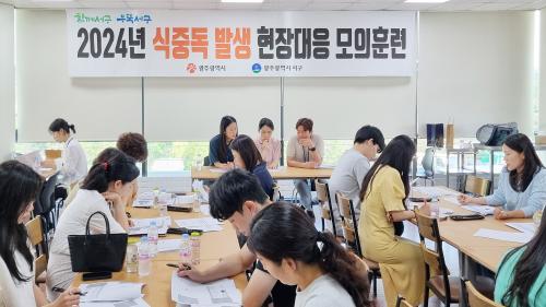 À̹ø ¸ðÀÇÈÆ·ÃÀº ±¤ÁÖ±¤¿ª½Ãû ¹× º¸°Çȯ°æ¿¬±¸¿ø, 5°³ ÀÚÄ¡±¸ ¾÷¹« ´ã´çÀÚ°¡ Âü¿©ÇÑ °¡¿îµ¥ ±â°üº° ½ÄÁßµ¶ ÇöÀå ´ëÀÀ´É·ÂÀ» °ÈÇϱâ À§ÇØ ¡ã½ÄÁßµ¶ ¹ß»ý ½Ã ½Å¼Óº¸°í ¹× °ü°è±â°ü ÀüÆÄü°è Á¡°Ë ¡ã½ÄÁßµ¶ ¿øÀαԸíÀ» À§ÇÑ ¿ªÇÐÁ¶»ç ½Ç½Ã ¡ã¿øÀνÄǰ ÃßÀû°ü¸® ¹× ¿¹¹æ±³À° µîÀÇ ÈÆ·ÃÀ» ÁøÇàÇß´Ù.