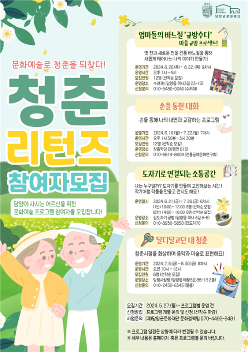 ´ã¾ç±º¹®ÈÀç´ÜÀº Áö³ 4¿ù ¡®¹®È¿Í ¿¹¼ú·Î ûÃáÀ» µÇã´Ù¡¯¶ó´Â ÁÖÁ¦·Î ½Ã´Ï¾î°¡ °ø°¨ÇÒ ¼ö ÀÖ´Â ¼ÒÀç¿Í ´ë»óÀÇ Æ¯Â¡À» ´ãÀº ¸ÂÃãÇü ¹®È¿¹¼ú ÇÁ·Î±×·¥À» °ø¸ðÇØ Áö¿ª ¹®È¿¹¼ú ´Üü 4°÷À» ¼±Á¤ÇßÀ¸¸ç, ´Ùä·Î¿î ÇÁ·Î±×·¥À» ÅëÇØ ³ë³âÃþÀÇ Âü¿©¸¦ µ¶·ÁÇÏ°í »çȸÀû °í¸³°¨À» ÇØ¼ÒÇϰíÀÚ ÇÑ´Ù.