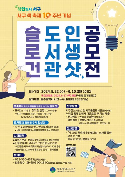 À̹ø °ø¸ðÀüÀº ½½·Î°Ç °ø¸ð¿Í µµ¼°ü Àλý¼¦ °ø¸ð·Î ³ª´µ¾î ÁøÇàµÈ´Ù. ½½·Î°Ç °ø¸ð´Â Ã¥ÃàÁ¦ÀÇ °¡Ä¡¿Í ¿ªÇÒÀ» ´ãÀº 15ÀÚ À̳»ÀÇ °£°áÇϰí ÇÔÃàÀûÀΠǥ¾î¸¦ Á¢¼ö¹Þ°í, Àλý¼¦ °ø¸ð´Â ¼±¸ °ü³» µµ¼°ü¿¡¼ Çà»ç․µ¶¼․µµ¼°ü Àü°æ µîÀ» ÂïÀº Ãß¾ï»çÁøÀ» »Ì´Â´Ù.