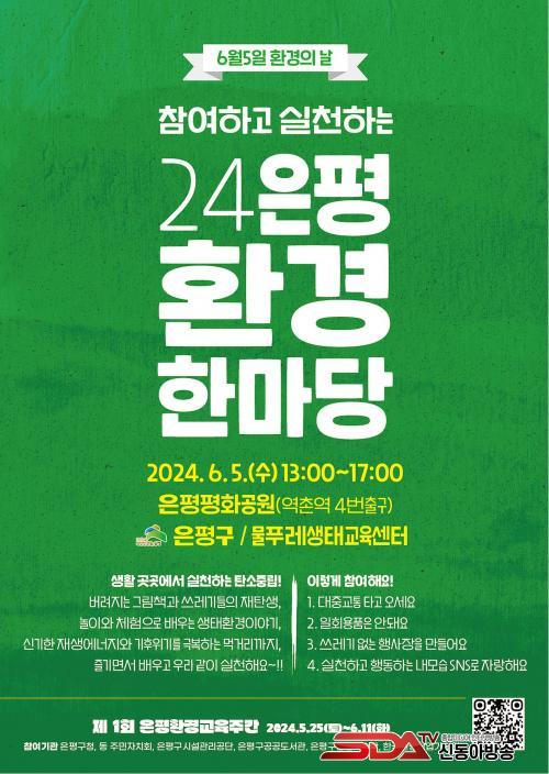 ƯÈ÷ ÀºÆò±¸´Â 6¿ù 5ÀÏ È¯°æÀÇ ³¯À» ¸Â¾Æ Áö³ 25ÀϺÎÅÍ ³»´Þ 11ÀϱîÁö ¡®2024 Á¦1ȸ ÀºÆòȯ°æ±³À°ÁÖ°£¡¯À» ¿î¿µÇÑ´Ù. ÀÌ ÁÖ°£¿¡´Â µ¿ ÁÖ¹ÎÀÚġȸ, ÀºÆò¹®ÈÀç´Ü, ÀºÆò±¸½Ã¼³°ü¸®°ø´Ü, 8°³ ÀºÆò±¸ °ø°øµµ¼°ü, ÀºÆò±¸Æò»ýÇнÀ°ü, Çѱ¹È¯°æ»ê¾÷±â¼ú¿øÀÌ Âü¿©ÇØ ÀÚüÀûÀ¸·Î Çà»ç¸¦ ¿¬´Ù. ȯ°æ±³À°, ³ª´®ÀåÅÍ, µµ¼Àü½Ã, ȯ°æ½Ã¼³°ßÇÐ, ȯ°æ¸¶¼ú¼î, üÇèÇнÀ, ÀÚ¿øÀçȰ¿ë, ³ì»ö¼Òºñ Ä·ÆäÀÎ, ¼¿ï±¹Á¦È¯°æ¿µÈÁ¦ Ưº°»ó¿µÈ¸ µîÀ» °³ÃÖÇÑ´Ù.