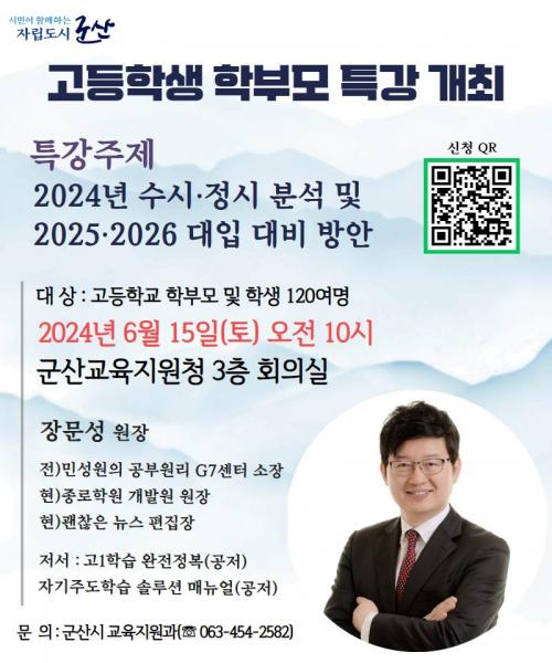 [½Åµ¿¾Æ¹æ¼Û=À̺´½Ä±âÀÚ] ±º»ê½Ã´Â 6¿ù 15ÀÏ ¿ÀÀü 10½Ã ±º»ê±³À°Áö¿øÃ» 3Ãþ ȸÀǽǿ¡¼­ °íµîÇлý Çкθð ¹× ÇлýÀ» ´ë»óÀ¸·Î ¡®2024³â ¼ö½Ã․Á¤½Ã ºÐ¼® ¹× 2025¡¤2026 ´ëÀÔ´ëºñ ¹æ¾È¡¯ Ư°­À» ½Ç½ÃÇÒ ¿¹Á¤ÀÌ´Ù.