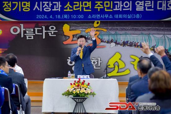 »çÁø= Á¤±â¸í ¿©¼ö½ÃÀåÀÌ Áö³­ 4¿ù 18ÀÏ ¼Ò¶ó¸é ½Ã¹Î°úÀÇ ¿­¸° ´ëÈ­¿¡¼­ ÁֹεéÀÇ °ÇÀÇ»çÇ×À» ¹Þ°í ÀÖ´Ù.