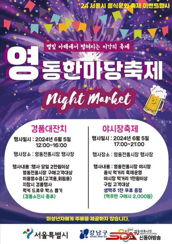 [½Åµ¿¾Æ¹æ¼Û °­³²±¸=À̽ŵ¿±âÀÚ]°­³²±¸ÀÇ ¿µµ¿ÀüÅë½ÃÀåÀÌ ÀÌ»öÀ½½ÄÀ» Áñ±â´Â ¾ß½ÃÀåÀ¸·Î º¯½ÅÇÏ´Â ¿µµ¿ÇѸ¶´çÃàÁ¦°¡ ¿À´Â 5ÀÏ ¿­¸°´Ù.