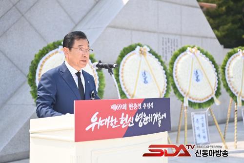 [½Åµ¿¾Æ¹æ¼Û Çϳ²½Ã=À̽ŵ¿±âÀÚ]ÀÌÇöÀç Çϳ²½ÃÀåÀº 6ÀÏ °Ë´Ü»ê ÇöÃæÅ¾¿¡¼­ ¿­¸° ¡®Á¦69ȸ ÇöÃæÀÏ Ãß³ä½Ä¡¯¿¡¼­ ¡°Á¶±¹À» À§ÇØ ¿Â¸öÀ» ´øÁö½Å ¼ø±º¼±¿­°ú È£±¹¿µ·ÉÀÌ Á¸°æ¹Þ°í, ±× ÈļյéÀÌ ¸í¿¹¿Í ±àÁö¸¦ °®°í »ì¾Æ°¥ ¼ö ÀÖµµ·Ï ¿¹¿ìÇϰڴ١±¶ó°í ¸»Çß´Ù.