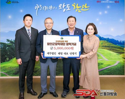 [½Åµ¿¾Æ¹æ¼Û ÇԾȱº=À̽ŵ¿±âÀÚ]¼¼¹«¹ýÀÎ Å¿µ(â¿ø½Ã ¸¶»êÇÕÆ÷±¸ »êÈ£µ¿ ¼ÒÀç) ¾Èº´¼® ´ëÇ¥´Â 10ÀÏ ÇԾȱºÃ»À» ¹æ¹®ÇØ Áö¿ªÀÎÀçÀ°¼ºÀ» À§ÇÑ ÀåÇбâ±Ý 500¸¸ ¿øÀ» ±º ÀåÇÐÀç´Ü¿¡ ±âŹÇß´Ù.