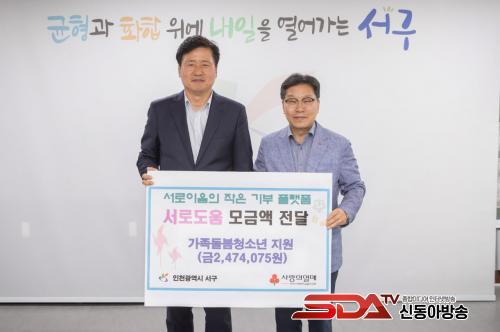 [½Åµ¿¾Æ¹æ¼Û ÀÎõ= À±¹Î½Ä±âÀÚ]ÀÎõ ¼­±¸(±¸Ã»Àå °­¹ü¼®)´Â Áö³­ 10ÀÏ ÀÎõ »çȸº¹Áö°øµ¿¸ð±Ýȸ(ȸÀå Á¶»ó¹ü)¿Í ¼­·Îµµ¿ò ¡®°¡Á·µ¹º½Ã»¼Ò³â Áö¿ø¡¯ ¸ð±Ý¾× Àü´Þ½ÄÀ» °¡Á³´Ù°í ¹àÇû´Ù.