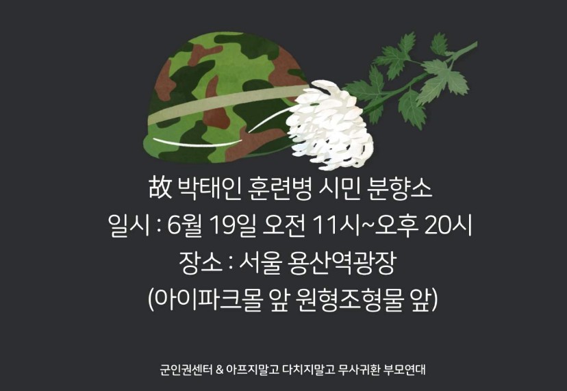 ¿À´Ã ¿ÀÀü 11½ÃºÎÅÍ ¿ÀÈÄ 8½Ã±îÁö ¼­¿ï ¿ë»ê¿ª¿¡ ÈÆ·Ãº´ Ã߸ð ½Ã¹Î ºÐÇâ¼Ò¸¦ ¼³Ä¡ÇÒ ¿¹Á¤ÀÌ´Ù. ±ºÀαǼ¾ÅÍ Ä¸ÃÄ