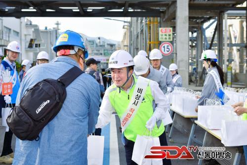ƯÈ÷ ´ëÁ¤ºñ ±Ù·ÎÀÚ Ãâ±Ù½Ã°£¿¡ ¸ÂÃç ¾ÆÄ§ 7½Ã20ºÐºÎÅÍ ½ÃÀÛµÈ Ä·ÆäÀο¡¼­ Âü¿©ÀÚµéÀº ±Ù·ÎÀÚ¿¡°Ô È«º¸¹°À» ¹èºÎÇÏ¸ç ¾ÈÀü±¸È£¸¦ Á¦Ã¢ÇÏ´Â µî »ç¾÷Àå ±Ù·ÎÀÚ ¾ÈÀüÀÇ½Ä °íÃë¿¡ Èû½è´Ù.