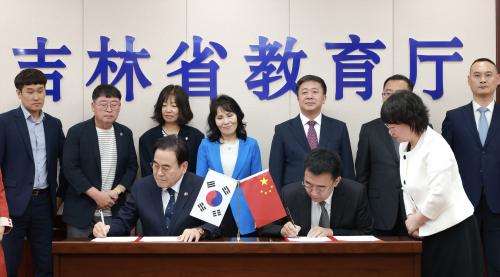 [½Åµ¿¾Æ¹æ¼Û=À̺´½Ä±âÀÚ] ¼­°Å¼® ÀüºÏƯº°ÀÚÄ¡µµ±³À°°¨Àº 24ÀÏ Áß±¹ ±æ¸²¼ºÀ» ¹æ¹®ÇØ ÀåÈ«ºó(íåûóÞ°) ±æ¸²¼º ±³À°Ã»Àå, ±æ¸²¼º ±³À°½Ç¹«À§¿øµé°ú ¸¸³ª ±¹Á¦±³·ù Çù·Â È®´ë ¹× ±³À° Çù·Â »çÇ׿¡ °üÇØ ÇùÀÇÇϰí, ¡®±³À°±³·ù‧Çù·Â¹üÀ§ È®´ë¿¡ °üÇÑ Çù¾à¡¯À» ü°áÇß´Ù.