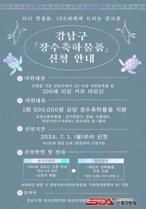 [½Åµ¿¾Æ¹æ¼Û °­³²±¸=À̽ŵ¿±âÀÚ]°­³²±¸(±¸Ã»Àå Á¶¼º¸í)°¡ ¿À´Â 7¿ùºÎÅÍ 100¼¼ ÀÌ»ó °ÅÁÖ ¾î¸£½Å¿¡°Ô 50¸¸ ¿ø »ó´çÀÇ ÃàÇÏ ¼±¹°À» Á¦°øÇÑ´Ù.