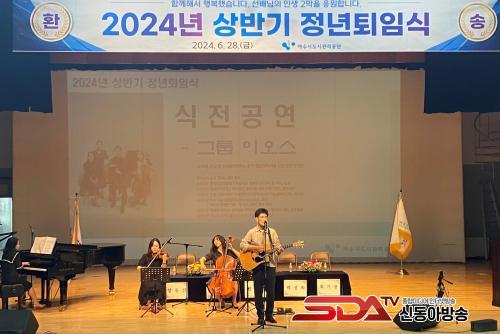 ½ÄÀü°ø¿¬À¸·Î´Â ±×·ì 'ÀÌ¿À½º'°¡ °¨¼ºÀûÀÎ À½¾ÇÀ» ¼±º¸¿© Âü¼®ÀÚµéÀÇ Å« È£ÀÀÀ» ¾ò¾ú´Ù. À̾îÁø ÅðÀÓÁ÷¿ø ¼Ò°³¿¡¼­´Â µµ½Ã¹ÌÈ­ºÎÀÇ ¾çµ¿½Å, ±è¼¼µ¿, ±èº´·Î, ¹ÚÀåÈñ, ÃÖ±â¿ë ¾¾°¡ ¹«´ë¿¡ ¿Ã¶ó, °¢ÀÚÀÇ °ø·Î¿Í Çå½ÅÀ» ±â¸®´Â ½Ã°£ÀÌ ¸¶·ÃµÇ¾ú´Ù.