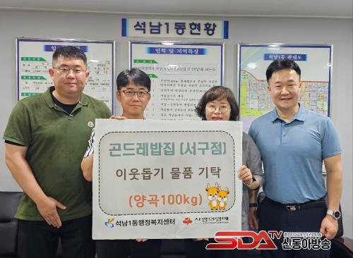 [½Åµ¿¾Æ¹æ¼Û ÀÎõ= À±¹Î½Ä±âÀÚ] ¼®³²1µ¿ ÇàÁ¤º¹Áö¼¾ÅÍ(µ¿Àå ¼ºÀ±ÁÖ)´Â Áö³­ 7¿ù 2ÀÏ ÀÎõ ¼­±¸ ½É°îµ¿ ¼ÒÀçÀÇ °ïµå·¹¹äÁý ¼­±¸Á¡(´ëÇ¥ ±è¿µÁÖ), Àλý°Ç¾î¹°(´ëÇ¥ °íÇü±â)·ÎºÎÅÍ ¼®³²1µ¿ °ü³» ¾î·Á¿î ÀÌ¿ôÀ» À§ÇÑ ³ª´®À¸·Î ½Ò 100kg¸¦ Àü´Þ¹Þ¾Ò´Ù.