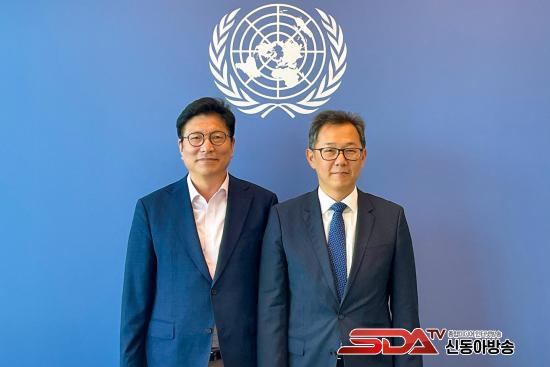 »çÁø=µµ¼ºÈÆ ±³À°°¨ÀÌ Àå¿íÁø UN º»ºÎ °æÁ¦»çȸ±¹Àå°ú ±â³ä ÃÔ¿µÀ» Çϰí ÀÖ´Ù.