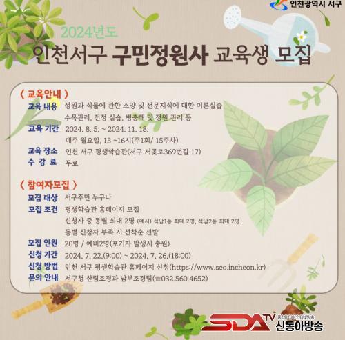 ÇØ´ç ±³À°Àº ±¸¹Î 20¸íÀ» ´ë»óÀ¸·Î ´ÙÀ½ ´Þ 5ÀϺÎÅÍ 11¿ù 15ÀϱîÁö ¸ÅÁÖ ¿ù¿äÀÏ¿¡ ÁøÇàµÇ¸ç Á¤¿ø°ú ½Ä¹°¿¡ °üÇÑ ¼Ò¾ç ¹× Àü¹®Áö½Ä¿¡ ´ëÇÑ ÀÌ·Ð ¹× ½Ç½À ±³À°À» ½ÃÇàÇÑ´Ù.