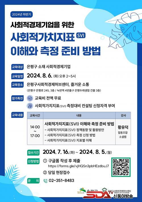 ÀºÆò±¸ °ü°èÀÚ´Â ¡°»çȸÀû°¡Ä¡ÁöÇ¥(SVI) ÃøÁ¤ Áغñ ±³À°À» ÅëÇØ »çȸÀû°æÁ¦±â¾÷µéÀÌ »çȸÀû °¡Ä¡¸¦ ¸íÈ®ÇÏ°Ô ÃøÁ¤Çϰí, °æÀï·ÂÀ» °®Ãâ ¼ö ÀÖµµ·Ï ¾ÕÀ¸·Îµµ ±â¾÷ ¿ª·® °­È­±³À°¿¡ Èû¾²°Ú´Ù¡±°í ¸»Çß´Ù.