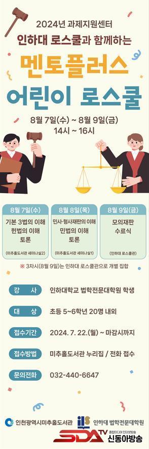 [½Åµ¿¾Æ¹æ¼Û ÀÎõ= À±¹Î½Ä±âÀÚ] ÀÎõ±¤¿ª½Ã ¹ÌÃßȦµµ¼­°üÀº ¿À´Â 8¿ù 7ÀϺÎÅÍ 8¿ù 9ÀϱîÁö 2024³â °úÁ¦Áö¿ø¼¾ÅÍ Æ¯°­¡®¸àÅäÇ÷¯½º ¾î¸°ÀÌ ·Î½ºÄð¡¯À» ¿î¿µÇÑ´Ù°í ¹àÇû´Ù.