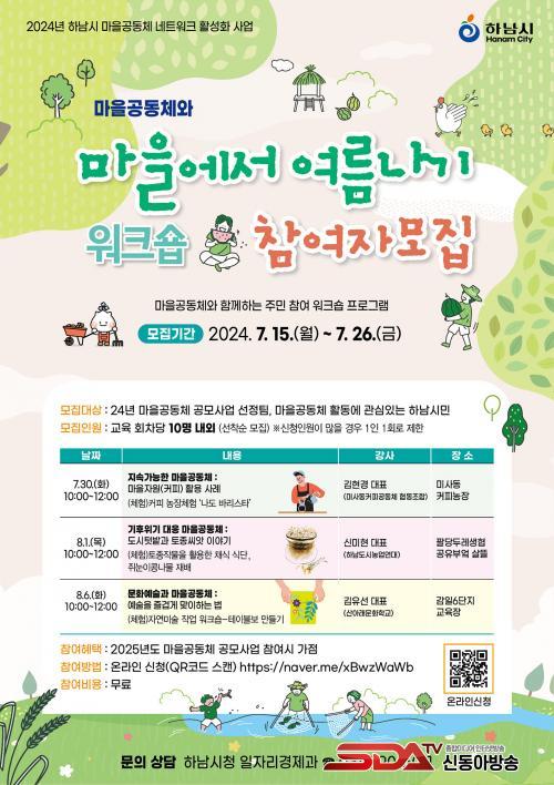 ¿öÅ©¼ó Âü°¡ Èñ¸ÁÀÚ´Â ¿À´Â 7¿ù 28ÀϱîÁö Æ÷½ºÅÍ ÇÏ´ÜÀÇ QRÄڵ忡 Á¢¼ÓÇØ ¿øÇÏ´Â ÁÖÁ¦¸¦ ¼±ÅÃÇÑ ÈÄ ½ÅûÇÒ ¼ö ÀÖ´Ù. ÀÚ¼¼ÇÑ ³»¿ëÀº Çϳ²½Ãû ȨÆäÀÌÁö °øÁö»çÇ×À» Âü°íÇϰųª ÀÏÀÚ¸®°æÁ¦°ú(¢Ï031-790-5011)·Î ¹®ÀÇÇÏ¸é µÈ´Ù.