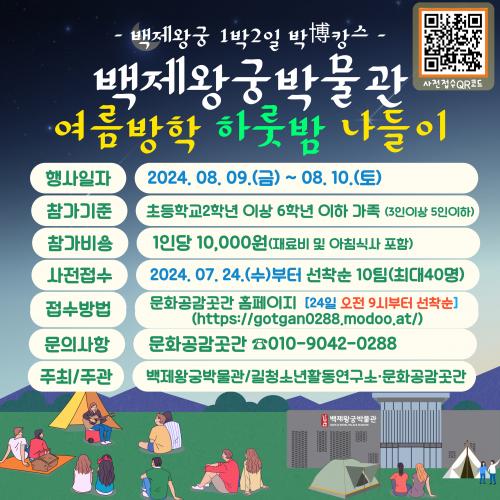 ¹éÁ¦¿Õ±Ã¹Ú¹°°üÀº Ãʵî 2~6Çгâ Àڳడ ÀÖ´Â °¡Á·À» ´ë»óÀ¸·Î 24ÀϺÎÅÍ '¿©¸§¹æÇÐ ¹Ú¹°°ü ³ªµéÀÌ' Âü°¡ ½ÅûÀ» ÁøÇàÇÑ´Ù. ¹®È­°ø°¨°÷°£ ´©¸®ÁýÀ» ÅëÇØ °¡Á· 10ÆÀ, 40¸íÀ» ¸ðÁýÇϰí Âü°¡ºñ´Â 1Àδç 1¸¸ ¿øÀÌ´Ù.