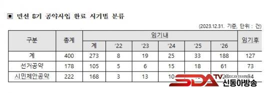 Æò°¡ °á°ú 10´ë Á¤Ã¥, 120´ë °ø¾à, 400°³ ½Çõ °úÁ¦ Áß 122°³ »ç¾÷ÀÌ ¿Ï·áµÇ¾ú°Å³ª ÀÌÇà ÈÄ °è¼Ó ÃßÁø ÁßÀ̸ç, °ø¾à»ç¾÷ ¿Ï·áÀ²Àº 30.5%¿¡ À̸¥´Ù. ¶ÇÇÑ 267°³ »ç¾÷ÀÌ °èȹ´ë·Î Á¤»ó ÃßÁøµÇ°í ÀÖ´Ù.