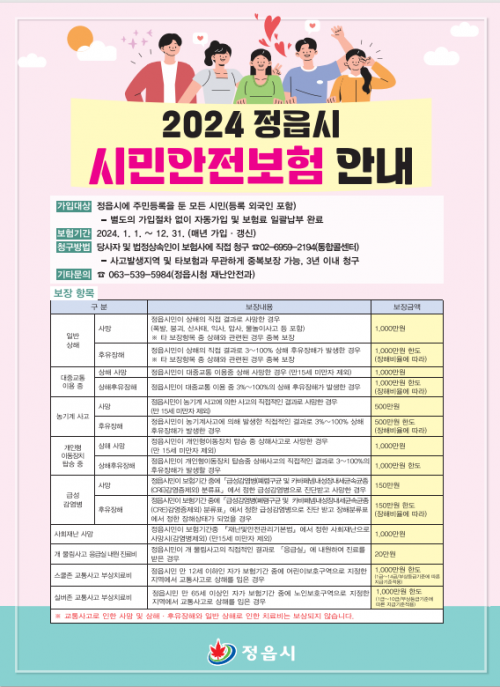 ÀÌ º¸ÇèÀº ÀϹݻóÇØ »ç¸Á ¹× ÈÄÀ¯ÀåÇØ(±³Åë»ç°í ¹× ÀϹݻóÇØ Ä¡·áºñ Á¦¿Ü), ´ëÁß±³Åë »óÇØ ¹× ÈÄÀ¯ÀåÇØ, »çȸÀç³ »ç¸Á, ³ó±â°è »ç°í »ç¸Á ¹× ÈÄÀ¯ÀåÇØ, ±Þ¼º°¨¿°º´ »ç¸Á ¹× ÈÄÀ¯ÀåÇØ µî ÃÑ 14°³ Ç׸ñÀ» Æ÷ÇÔÇϸç ÃÖ´ë 1000¸¸ ¿ø±îÁö º¸ÀåÇÑ´Ù.