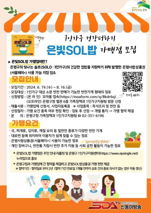 ¡®ÀººûSOL¹ä¡¯Àº ¡®Àº¡¯Æò±¸ÀÇ ¡®ºû¡¯³ª´Â ¡®SOL¡¯O(1Àΰ¡±¸)¿¡°Ô °Ç°­ÇÑ Áý¡®¹ä¡¯À» Áö¿øÇÑ´Ù´Â ÀǹÌÀÇ ÀºÆò±¸ Ưȭ»ç¾÷ÀÌ´Ù. ºÒ±ÔÄ¢ÇÑ ½Ä½À°ü µî °Ç°­ µ¹º½ÀÌ ÇÊ¿äÇÑ 1Àΰ¡±¸¿¡ Á¤±âÀûÀÎ °Ç°­ ¸Ô°Å¸®¸¦ Á¦°øÇϰíÀÚ Áö¿ª¼Ò»ó°øÀΰú Çù¾àÀ» ü°áÇØ »ç¾÷À» ÁøÇàÇϰí ÀÖ´Ù.