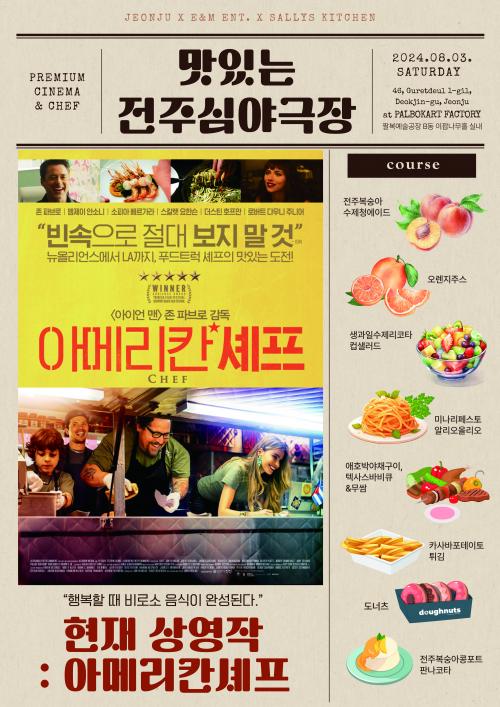 ¸ÕÀú ¿À´Â 3ÀÏ¿¡´Â ÇØ°í´çÇÑ ÀÏ·ù ¼ÎÇÁ°¡ ǪµåÆ®·°¿¡ µµÀüÇÑ ÈÄ ÁøÁ¤À¸·Î ÀÚ½ÅÀÇ À½½Ä°ú ÀλýÀ» ¿ä¸®ÇÏ´Â ¹Ì±¹ ¿µÈ ¡®¾Æ¸Þ¸®Ä ¼ÎÇÁ¡¯°¡ »ó¿µµÇ¸ç, ÀüÁÖÀÇ ½ÄÀç·á·Î Á¶¸®µÈ ¿µÈ ¼Ó À½½ÄÀ» ¸Àº¼ ¼ö ÀÖ´Ù.