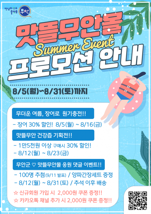 ¶ÇÇÑ, ¹«¾È±º°ú ¸À¶ã¹«¾È¸ôÀ» ÀÀ¿øÇÏ´Â ´ñ±Û À̺¥Æ®¸¦ 8¿ù 12ÀϺÎÅÍ 31ÀϱîÁö ¸À¶ã¹«¾È¸ô ȨÆäÀÌÁö¿¡¼ ÁøÇàÇÑ´Ù. 100¸íÀ» Ãß÷ÇÏ¿© ¼ø¾çÆÄÀå ·£´ý 2Á¾ ¼¼Æ® °æÇ°À» Á¦°øÇÒ ¿¹Á¤ÀÌ´Ù.