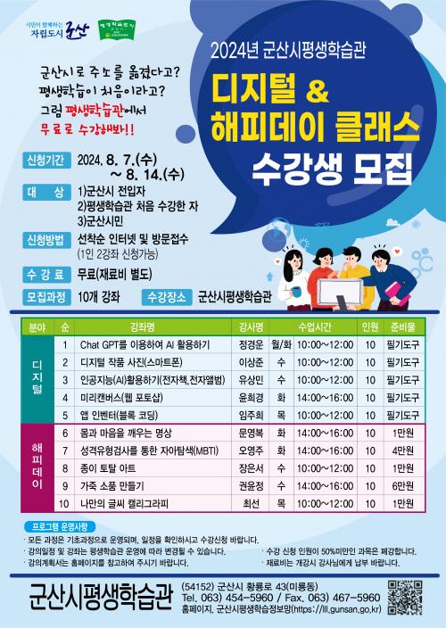 À̹ø¿¡ ¿¸®´Â Ư°Àº 4Â÷»ê¾÷Çõ¸í°ú µðÁöÅÐ »çȸ º¯È¸¦ ¿¹ÃøÇÏ°í ½Ã¹ÎµéÀÌ ±âº»ÀûÀÎ Áö½ÄÀ» ½ÀµæÇÒ ¼ö ÀÖ´Â ³»¿ë°ú ±º»ê½Ã ÀüÀÔÀÚ¿Í Æò»ýÇнÀ¿¡ óÀ½ Á¢ÇÏ´Â ½Ã¹ÎµéÀ» À§ÇÑ ¸ÂÃãÇü Ư°À¸·Î Á¦°øµÇ¸ç Â÷º°ÈµÈ Á¤ÁÖ¿©°ÇÀ» Á¦°øÇÔÀ¸·Î½á ±º»ê½Ã Æò»ýÇнÀ¿¡ ´ëÇÑ Àúº¯È®´ë¸¦ À§ÇØ ±¸¼ºÇß´Ù.