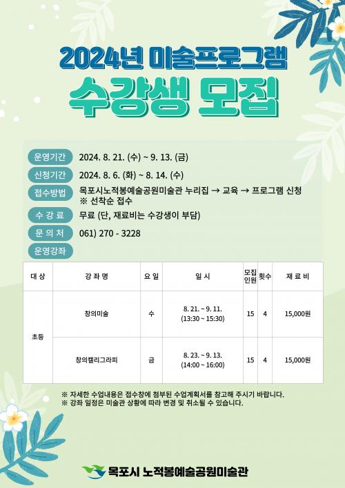 À̹ø ÇÁ·Î±×·¥Àº âÀǹ̼ú, âÀÇ͏®±×¶óÇÇ·Î ±¸¼ºµÇ¾î ÀÖÀ¸¸ç ¼ö°½ÅûÀº ¿À´Â 6ÀϺÎÅÍ 14ÀϱîÁö ³ëÀûºÀ¿¹¼ú°ø¿ø¹Ì¼ú°ü ´©¸®ÁýÀ» ÅëÇØ °¡´ÉÇÏ¸ç ¼±Âø¼øÀ¸·Î ¸¶°¨µÈ´Ù.