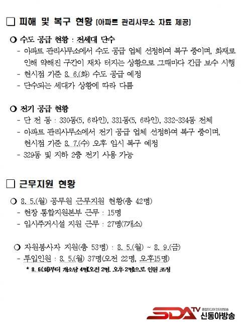 ¶ÇÇÑ ´çÃÊ 8¿ù 2ÀÏ ±âÁØ Àü±â ¹× ¼öµµ µîÀÇ º¹±¸ ½ÃÁ¡ÀÌ 2~3ÀÏ ³» °¡´ÉÇÒ °ÍÀ¸·Î ÆÇ´ÜÇÏ¿´À¸³ª, ÇöÀå »óȲ¿¡ ¿©·¯ °¡Áö ¾î·Á¿òÀÌ ÀÖ¾î º¹±¸°¡ Áö¿¬µÉ °ÍÀ¸·Î ¿¹»óµÇ´Â »óȲÀÔ´Ï´Ù.