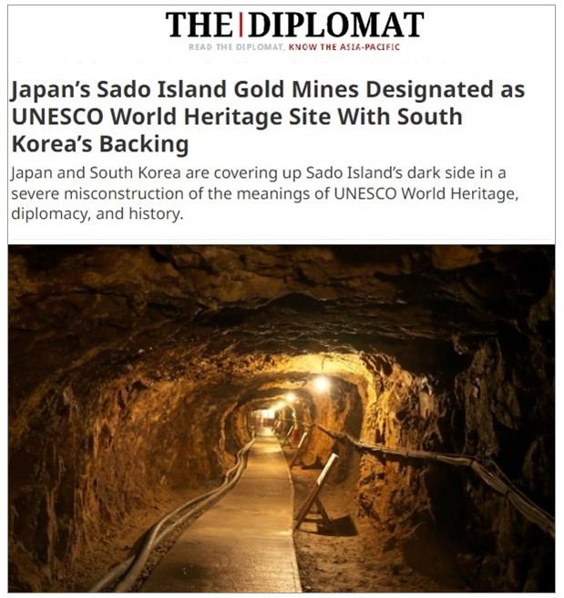Ú¸ ¿Ü±³Àü¹® ¸Åü µðÇ÷Π¸ÅÆ®°¡ 7ÀÏ º¸µµÇÑ "Çѱ¹ÀÇ ÁöÁö ¾Æ·¡ À¯³×½ºÄÚ ¼¼°è¹®È­À¯»êÀ¸·Î ÁöÁ¤µÈ ÀϺ»ÀÇ »çµµ±¤»ê(Japan¡¯s Sado Island Gold Mines Designated as UNESCO World Heritage Site With South Korea¡¯s Backing)"À̶ó´Â Á¦¸ñÀÇ ±â»ç. µðÇÃ·Î¸ÅÆ® ĸÃÄ