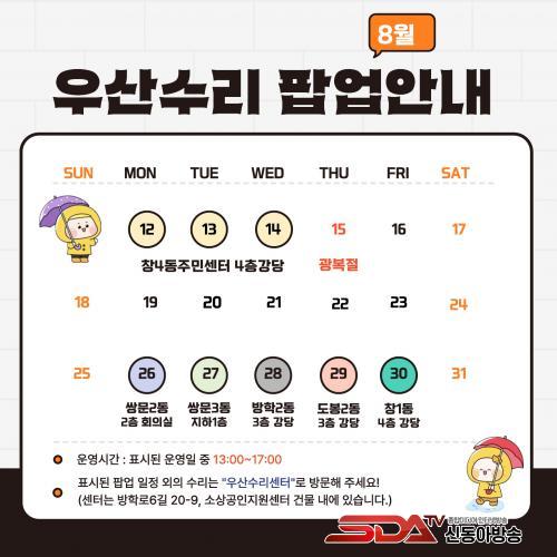 8~9¿ùÀº ¼¾ÅͿ°ú º°°³·Î ÆË¾÷½ºÅä¾îµµ ¿î¿µÇÑ´Ù. 8¿ù ÀÏÁ¤Àº ¡ã8¿ù 12~14ÀÏ Ã¢4µ¿Áֹμ¾ÅÍ ¡ã8¿ù 26ÀÏ ½Ö¹®2µ¿Áֹμ¾ÅÍ ¡ã8¿ù 27ÀÏ ½Ö¹®3µ¿Áֹμ¾ÅÍ ¡ã8¿ù 28ÀÏ ¹æÇÐ2µ¿Áֹμ¾ÅÍ ¡ã8¿ù 29ÀÏ µµºÀ2µ¿Áֹμ¾ÅÍ ¡ã8¿ù 30ÀÏ Ã¢1µ¿Áֹμ¾ÅÍ´Ù.