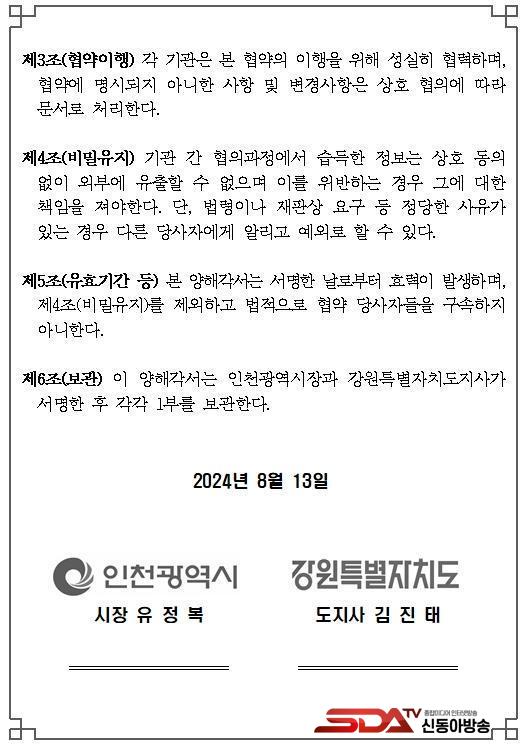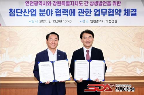 »çÁø=À¯Á¤º¹ ÀÎõ±¤¿ª½ÃÀå°ú ±èÁøÅ °­¿øÆ¯º°ÀÚÄ¡µµÁö»ç°¡ 13ÀÏ ½Ãû Á¢°ß½Ç¿¡¼­ ¿­¸° 'ÀÎõ±¤¿ª½Ã-°­¿øÆ¯º°ÀÚÄ¡µµ ÷´Ü»ê¾÷ ºÐ¾ß Çù·Â ¾÷¹«Çù¾à ü°á½Ä'¿¡¼­ Çù¾àÀ» ü°áÇϰí ÀÖ´Ù.