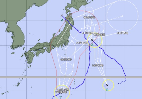 ÀÌ¹Ì ÀϺ» ºÏµ¿ºÎ¸¦ 5È£ ÅÂdzÀÌ °üÅëÇßÀ¸¸ç, Â÷·Ê·Î 8È£ ÅÂdz±îÁö ÀϺ» »ó·úÀ» ±â´Ù¸®°í ÀÖ´Ù. ÀϺ» ±â»óû ĸÃÄ