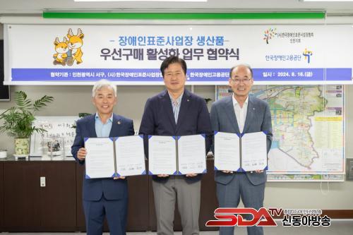 [½Åµ¿¾Æ¹æ¼Û ÀÎõ= À±¹Î½Ä±âÀÚ] ÀÎõ ¼­±¸(±¸Ã»Àå °­¹ü¼®)´Â Áö³­ 16ÀÏ ÀÎõ½Ã ±âÃÊÀÚÄ¡´Üü Áß ÃÖÃÊ·Î (»ç)Çѱ¹Àå¾ÖÀÎÇ¥ÁØ»ç¾÷ÀåÇùȸ ÀÎõÁöȸ(ȸÀå ±è¿µÈÆ), Çѱ¹Àå¾ÖÀΰí¿ë°ø´Ü ÀÎõÁö»ç(Áö»çÀå È«µÎÇ¥)¿Í Àå¾ÖÀÎÇ¥ÁØ»ç¾÷Àå»ý»êǰ ¿ì¼±±¸¸Å Ȱ¼ºÈ­¸¦ À§ÇÑ ¾÷¹« Çù¾àÀ» ü°áÇß´Ù.