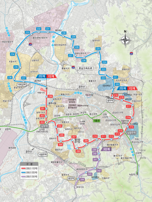 ¡®µµ½Ãöµµ 2È£¼± 2´Ü°è¡¯´Â ±¤ÁÖ¿ª¿¡¼ Àü³²´ëÇб³¸¦ °ÅÃÄ Àϰ÷´Ü¡¤¼ö¿Ï¡¤¿î³²Áö±¸ µî ºÏºÎÁö¿ªÀ» ¿¬°áÇÏ´Â 20.046§° ±¸°£¿¡ 18°³ Á¤°ÅÀåÀ» °Ç¼³ÇÏ´Â ´ë±Ô¸ð ÇÁ·ÎÁ§Æ®ÀÌ´Ù. 1´Ü°è¿Í ¿¬°èÇØ ±âÁ¸ µµ½É°ú ½Åµµ½Ã °£ ±³Åë È¥ÀâÀ» ÇØ¼ÒÇϰí, µµ½Ãöµµ Áß½ÉÀÇ ´ëÁß±³Åëü°è¸¦ ±¸ÃàÇÔÀ¸·Î½á ±¤ÁÖÁö¿ªÀÇ ±ÕÇü ¹ßÀü°ú µµ½Ã°³¹ßÀ» ÃËÁøÇÒ °ÍÀ¸·Î ±â´ëµÈ´Ù.