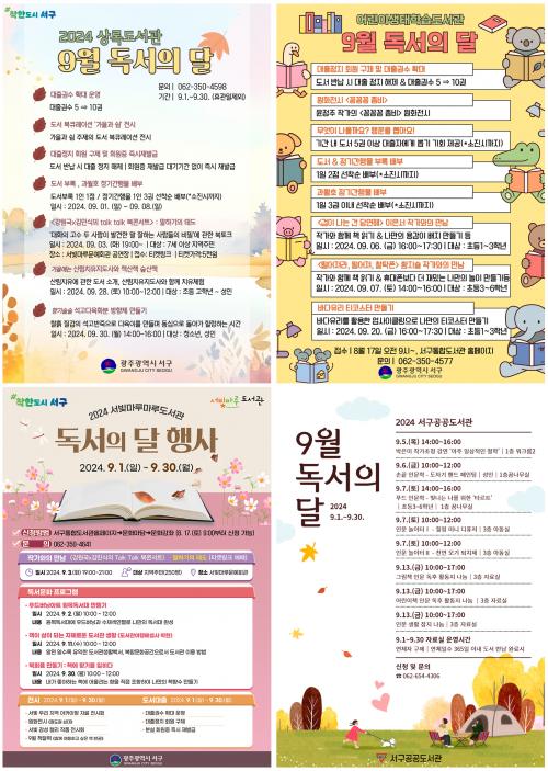 ¼­±¸´Â ÁֹεéÀÇ µ¶¼­½À°ü Çü¼ºÀ» À§ÇØ 4°³ ±¸¸³µµ¼­°ü(»ó·Ï¡¤¾î¸°ÀÌ»ýÅÂÇнÀ¡¤¼­ºû¸¶·ç¡¤¼­±¸°ø°øµµ¼­°ü)ÀÇ Æ¯¼ºÀ» »ì·Á dz¼ºÇÑ µ¶¼­¹®È­ ÇÁ·Î±×·¥À» ÁغñÇß´Ù.