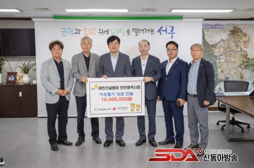 [½Åµ¿¾Æ¹æ¼Û ÀÎõ= À±¹Î½Ä±âÀÚ] ÀÎõ ¼­±¸(±¸Ã»Àå °­¹ü¼®)´Â 8¿ù 22ÀÏ, ´ëÇѰǼ³Çùȸ ÀÎõ±¤¿ª½Ãȸ(ȸÀå ¹ÚÀº»ó)·ÎºÎÅÍ ÀÌ¿ôµ½±â ¼º±Ý 1,000¸¸¿øÀ» Àü´Þ¹Þ¾Ò´Ù°í ¹àÇû´Ù.