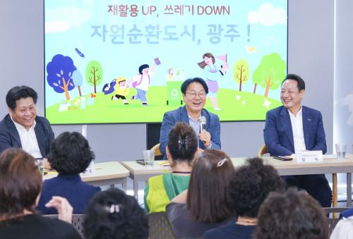 ±¤ÁÖ±¤¿ª½Ã´Â 29ÀÏ µ¿±¸ ģȯ°æÀÚ¿ø¼øÈ¯¼¾ÅÍ¿¡¼­ ¡®ÀçȰ¿ë ¾÷(UP), ¾²·¹±â ´Ù¿î(DOWN) ±¤ÁÖ¡¯¸¦ À§ÇÑ Ã£¾Æ°¡´Â ¼øÈ¸°£´ãȸ¸¦ °³ÃÖÇß´Ù. °£´ãȸ¿¡´Â °­±âÁ¤ ½ÃÀåÀ» ºñ·ÔÇØ ÀÓÅà µ¿±¸Ã»Àå, ÀÚ¿ø¼øÈ¯Çؼ³»ç µî ÁֹΠ70¿©¸íÀÌ Âü¼®Çß´Ù.