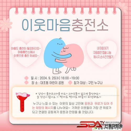 ¡®ÀÌ¿ô¸¶À½ ÃæÀü¼Ò¡¯´Â ´©±¸³ª ÇÑ ¹øÂë °æÇèÇßÀ» ÀÏ»óÀÇ °í¹Î°ú À̸¦ °ø°¨ÇÏ´Â ÀÌ¿ôµéÀÌ µûµíÇÑ ÀÀ¿ø°ú Èñ¸Á ¸Þ½ÃÁö, °æÇè¿¡¼­ ¾òÀº À§·Î ±ÛÀ» ³ª´©´Â ÇÁ·Î±×·¥ÀÌ´Ù.