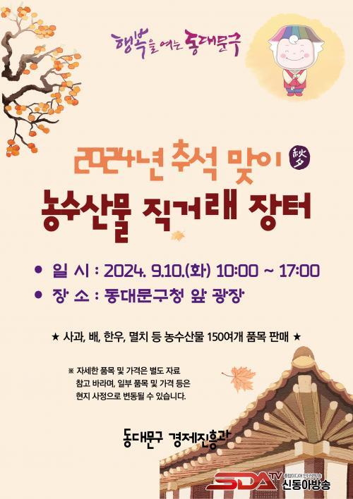 [½Åµ¿¾Æ¹æ¼Û=À̽ŵ¿±âÀÚ] ¼­¿ï µ¿´ë¹®±¸ ±¸Ã»Àå ÀÌÇÊÇüÀº 9¿ù 10ÀÏ(È­) ¿ÀÀü 10½ÃºÎÅÍ ¿ÀÈÄ 5½Ã±îÁö ±¸Ã» ¾Õ ±¤Àå¿¡¼­ ¡®2024³â Ãß¼®¸ÂÀÌ ³ó¼ö»ê¹° Á÷°Å·¡ ÀåÅÍ¡¯¸¦ ¿î¿µÇÑ´Ù°í 4ÀÏ ¹àÇû´Ù.