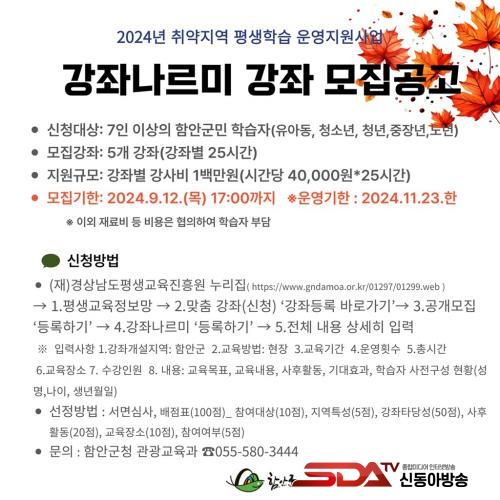 ¿î¿µ±â°£Àº ¿ÃÇØ 9¿ùºÎÅÍ 11¿ù±îÁöÀ̸ç, Áö¿ø±Ý¾×Àº ÇÑ °­Á´ç 25½Ã°£À¸·Î 100¸¸ ¿øÀÇ °­»ç·á¸¦ Áö¿øÇÑ´Ù.