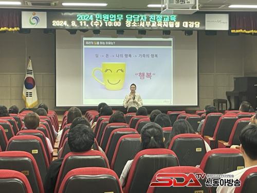 ¼­ºÎ±³À°Áö¿øÃ»Àº 11ÀÏ ±³À°Áö¿øÃ» Á÷¿ø°ú À¯¡¤ÃÊ¡¤ÁßÇб³ ¹Î¿ø ¾÷¹« ´ã´çÀÚµéÀ» ´ë»óÀ¸·Î ±³À°ÇàÁ¤¼­ºñ½º ¸¶Àεå Çâ»óÀ» À§ÇÑ Ä£Àý ±³À°À» ½Ç½ÃÇß´Ù.
