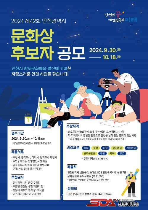 ÀÎõ±¤¿ª½Ã´Â 9¿ù 30ÀÏ ~ 10¿ù 18ÀϱîÁö Á¦42ȸ ¹®È»ó Èĺ¸ÀÚ¸¦ °ø¸ðÇÑ´Ù°í ¹àÇû´Ù.