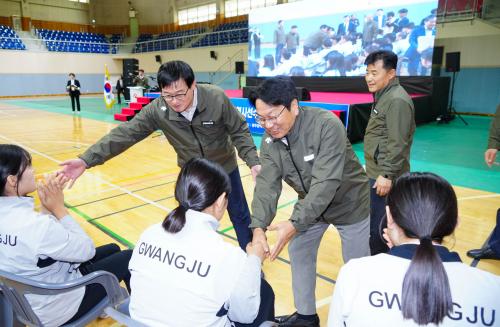 °á´Ü½Ä¿¡´Â °±âÁ¤ ½ÃÀå°ú ½Å¼öÁ¤ ±¤ÁÖ½ÃÀÇȸ ÀÇÀå, ÀÌÁ¤¼± ±¤Áֽñ³À°°¨, Àü°©¼ö ±¤ÁÖ½ÃüÀ°È¸Àå, ¼±¼ö 300¿©¸íÀÌ Âü¼®Çß´Ù.