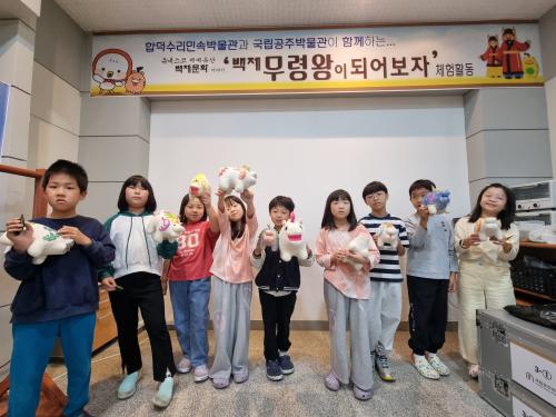 10¿ù ÇÑ ´Þ°£ ¸ÅÁÖ Åä¿äÀÏ¿¡´Â ¾î¸°À̸¦ µ¿¹ÝÇÑ °¡Á·°ú ÇÔ²² ÇÕ´ö¼ö¸®¹Î¼Ó¹Ú¹°°ü ´Ù¸ñÀû½Ç¿¡¼ 120ºÐ°£ ±³À°À» ÁøÇàÇÑ´Ù. 1ºÎ üÇèÀº ¡®¿õÁø¿¡¼ ãÀº ¹éÁ¦ÀÇ ²Þ¡¯ µ¿¿µ»ó ½ÃûÀ» ½ÃÀÛÀ¸·Î, ¿Õ¸ª ÃâÅä¹° Ã˰¢Ã¼Çè, Áø¹¦¼ö ÀÎÇü »öÄ¥Çϱâ, ±Ýµ¿½Å¹ß ¸¸µé±â, ¿Õ°ú ¿Õºñº¹ üÇè°ú Áï¼® »çÁø ÃÔ¿µÀ» ÇÏ°Ô µÇ¸ç, 2ºÎ üÇèÀº ¿Â °¡Á·ÀÌ ¸ð¿© ÇÕ´öÁ¦¸¦ ¾Ë¾Æº¸°í ÇÕ¶± ¸¸µé±â·Î ±³À°À» ¸¶¹«¸®ÇÑ´Ù.