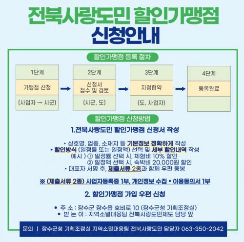 °¡ÀÔÀ» ¿øÇÏ´Â »ç¾÷ÁÖ´Â ÁýÁß ¸ðÁý±â°£ÀÎ ¿À´Â 31ÀÏ(¸ñ)±îÁö Àå¼ö±ºÃ» ȨÆäÀÌÁö¸¦ Âü°íÇØ ¿ìÆíÀ¸·Î °¡ÀÔÇÒ ¼ö ÀÖÀ¸¸ç ÀÚ¼¼ÇÑ »çÇ×Àº Àå¼ö±º Áö¿ª¼Ò¸ê´ëÀÀÆÀ(¢Ï063-350-2042)À¸·Î ¹®ÀÇÇÏ¸é µÈ´Ù.